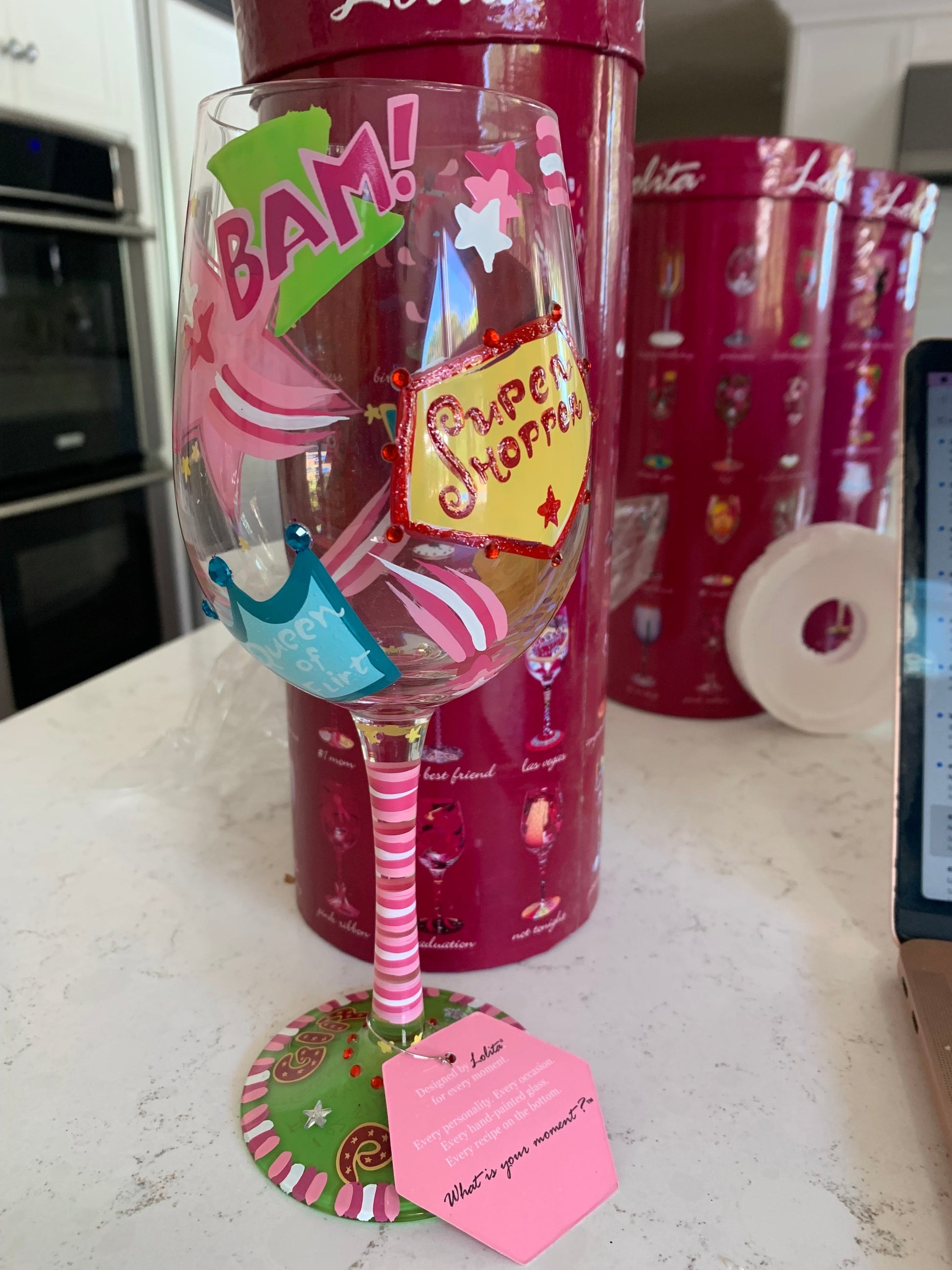 Lolita Hand-painted collectible wine glass, Girl Power in Gift Box. 15oz glass for both red and white wines.